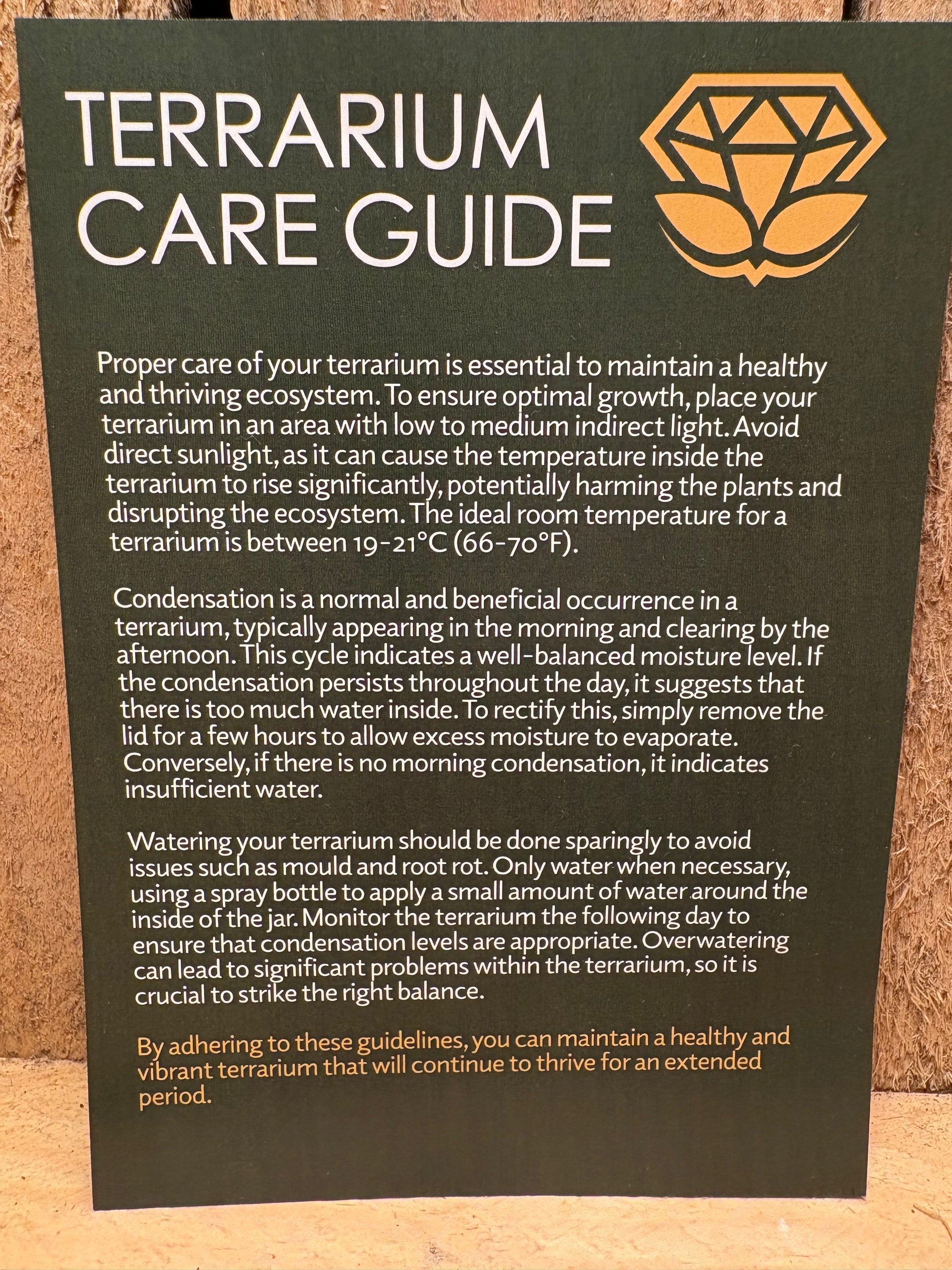 All terrarium kits come with easy to follow instructions on building your terrarium and also a care guide to keep it looking it's best!